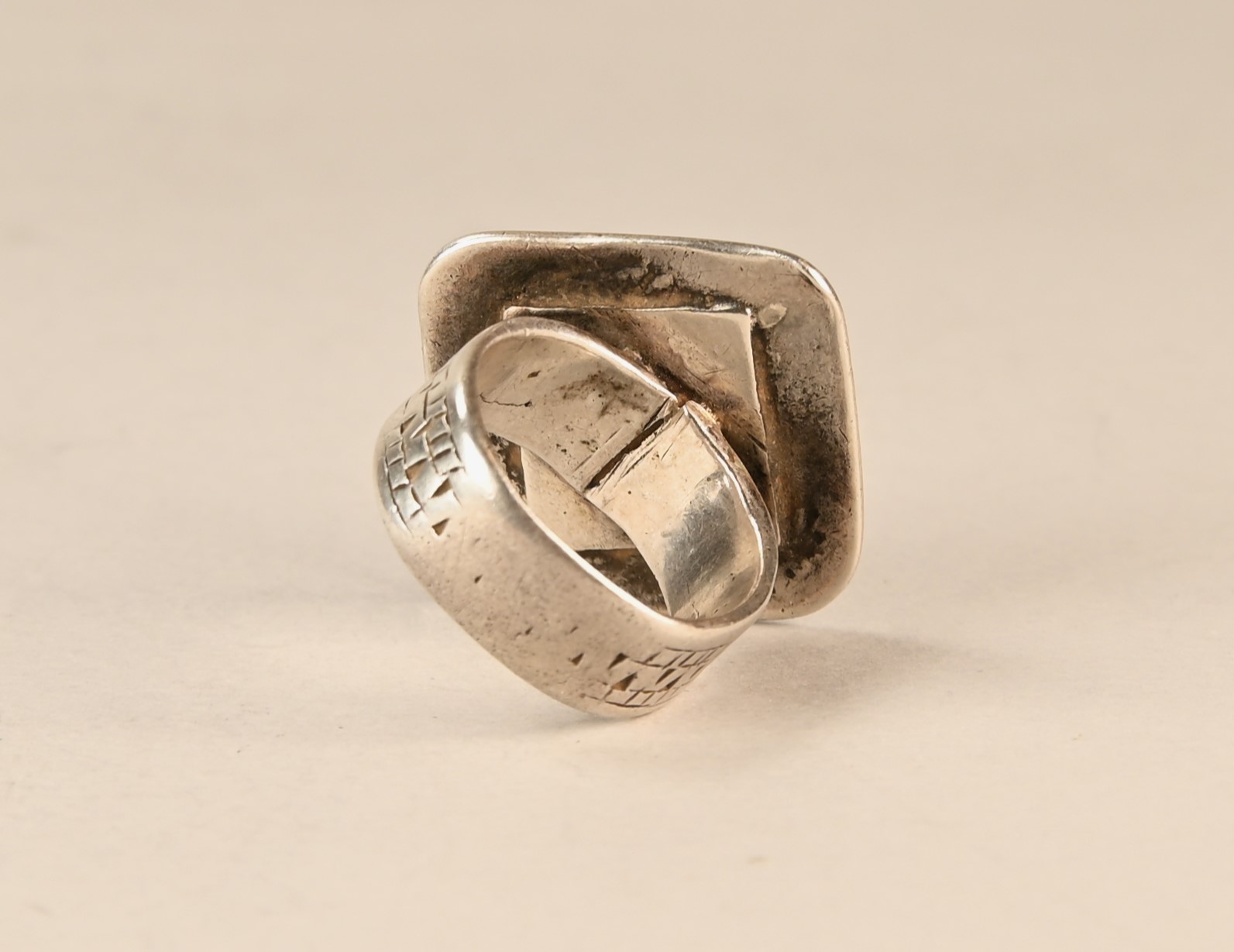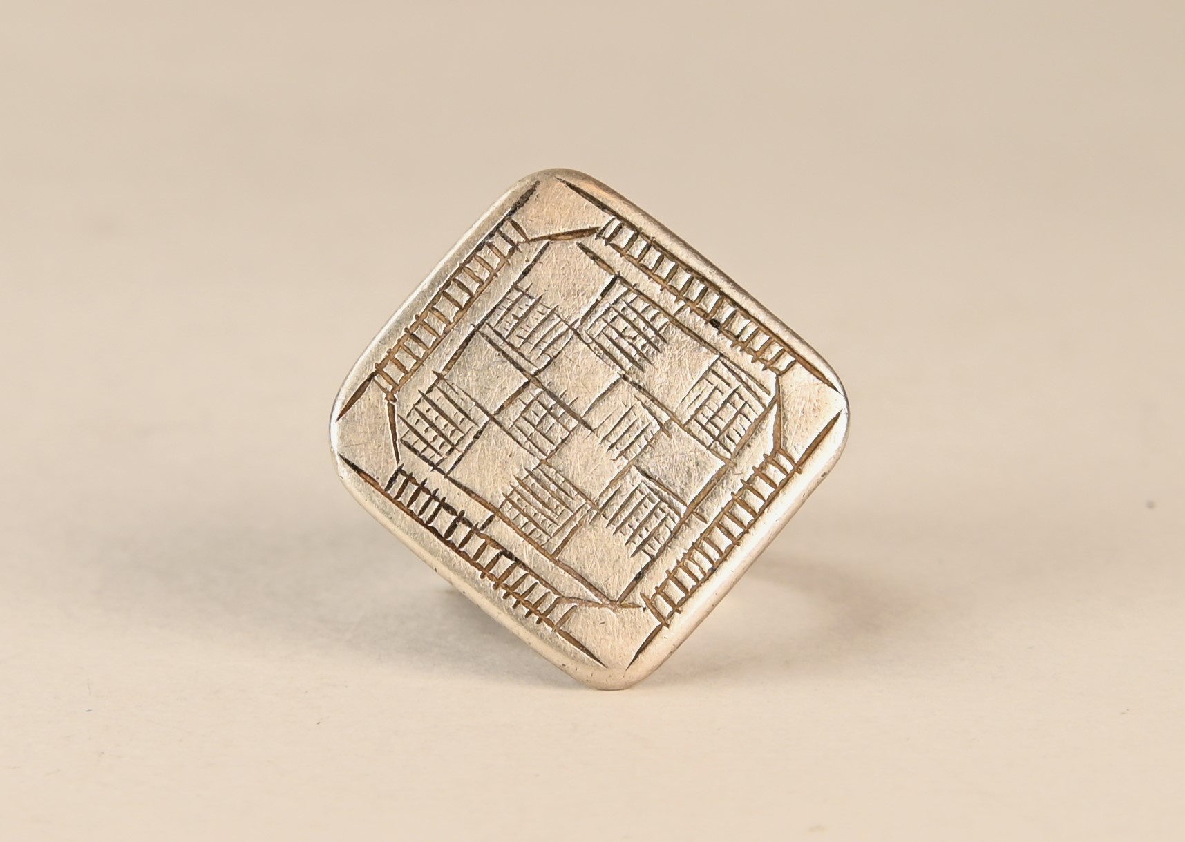 Antico anello omanita in argento con incisioni sulla parte frontale.